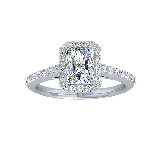 EMERALD-CUT LAB GROWN HALO DIAMOND ENGAGEMENT RING