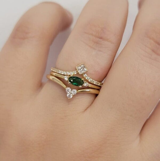 OVAL EMERALD RING / 14K SOLID GOLD VINTAGE RING /THREE STONE ENGAGEMENT RING / ANNIVERSARY GIFT / OVAL ART DECO / WEDDING RING