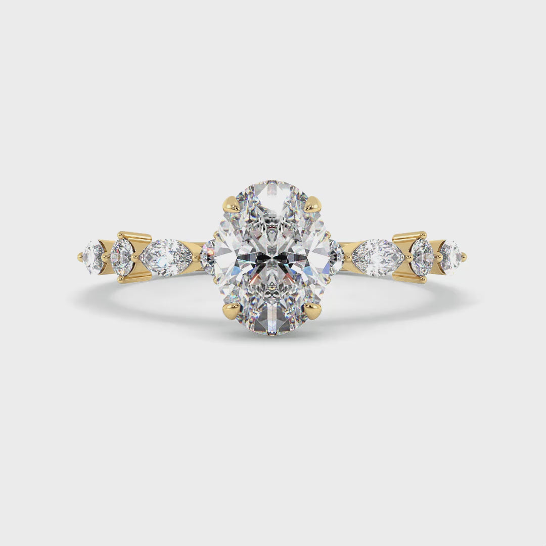 This 1.5 Ct lab grown diamond oval engagement ring features a stunning hidden halo design that enhances the center stone’s brilliance while maintaining an elegant, understated profile. The oval cut diamond offers a unique blend of classic sophistication and modern style, maximizing sparkle and visual impact. Crafted with precision, this ring combines ethical sourcing with expert craftsmanship, making it an exceptional choice for those seeking a sustainable yet luxurious symbol of commitment. Its hidden halo adds depth and dimension, creating a captivating look that stands out with subtle elegance