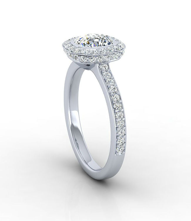 BEZEL PAVÉ HALO DIAMOND ENGAGEMENT RING