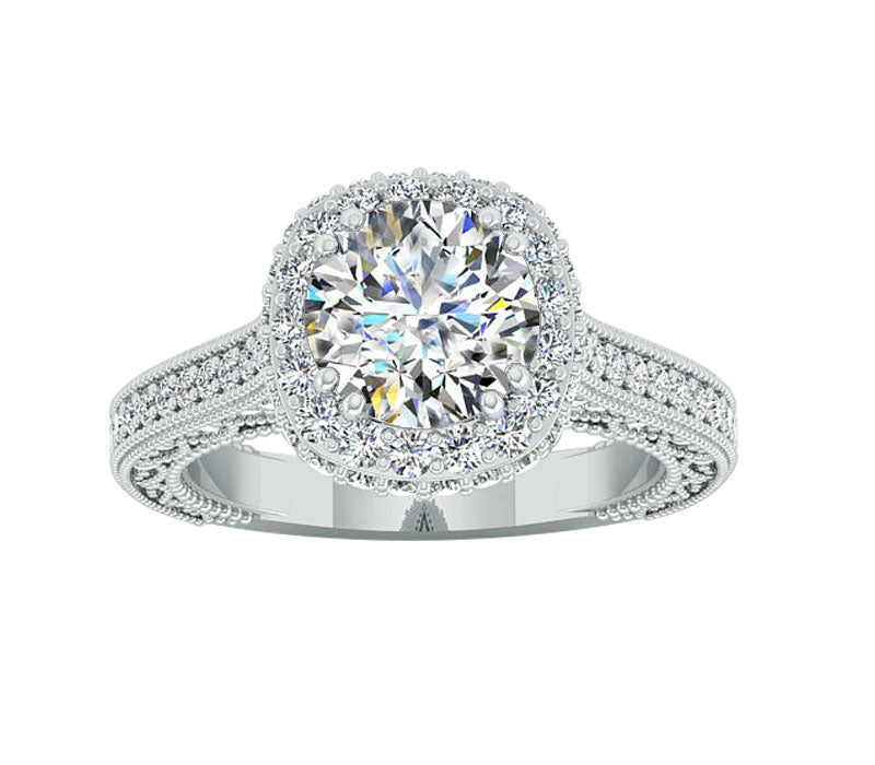 CATHEDRAL MILGRAIN DECORATED LUMINOUS HALO DIAMONDS ENGAGEMENT RING