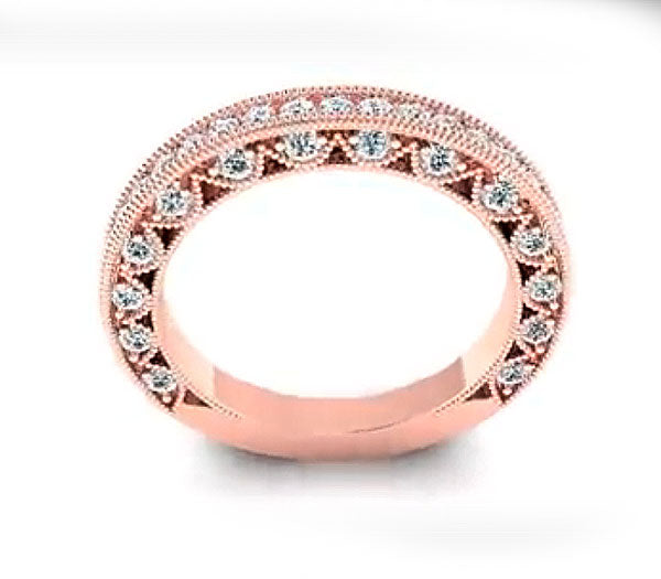 This wavy designed diamond ring features a channel set round cut diamonds ,that are surrounded by prong set round diamonds on each side of the ring. The milgrain detailing on the edges adds a touch of sparkle and beauty. Can be made with different Diamond Shape.