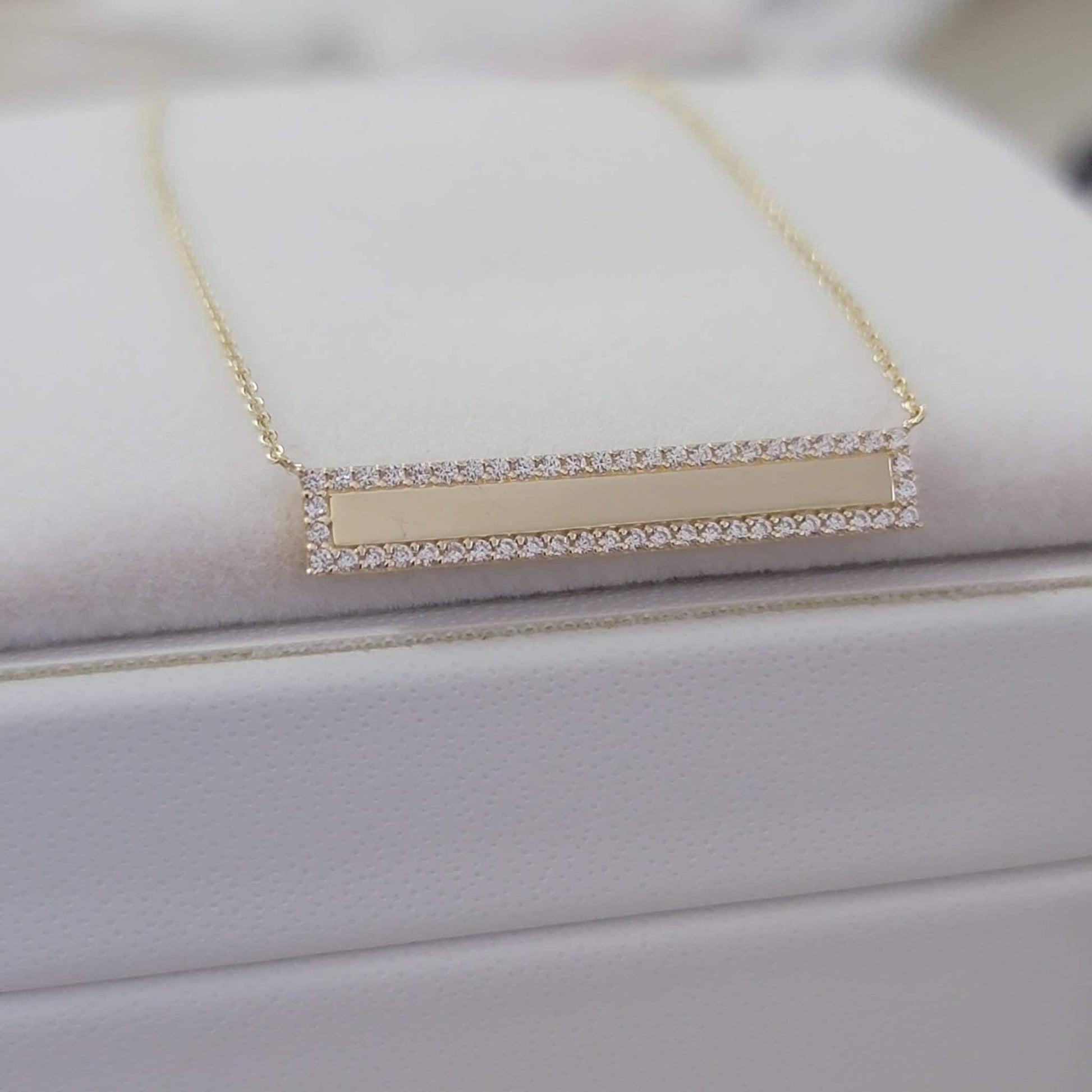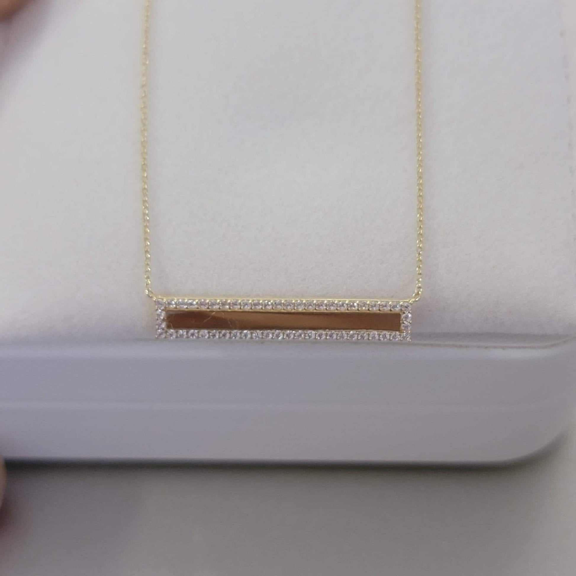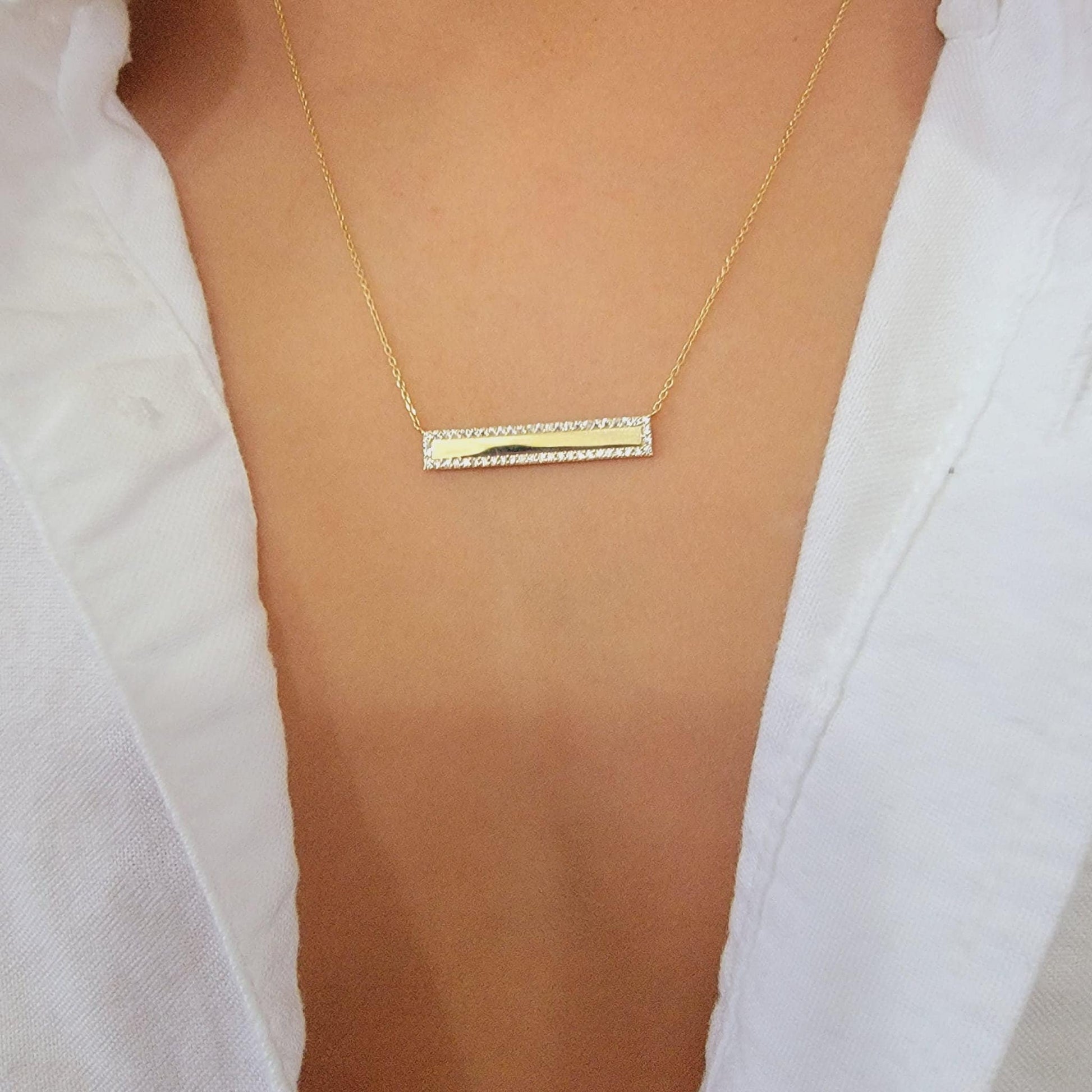 Diamond Bar Necklace, 14k Solid Gold Diamond Bar Necklace with Micro Pave Setting, Diamond Bar Trapeze Necklace, Layering Bar Necklace