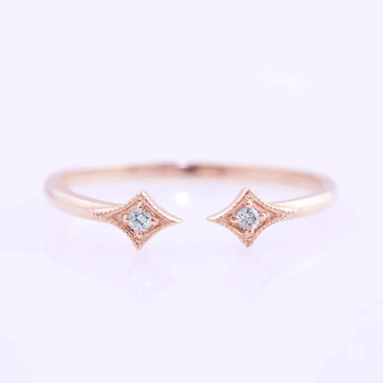 Dual Stone Ring has two 0.08 carat diamonds twinkling on opposite ends.