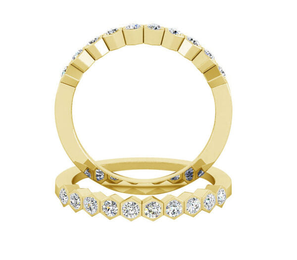 This elegant wedding band features ten luminous round diamonds sit perfectly across the top of the band and are bezel-set . Can be made with different Diamond Shape.