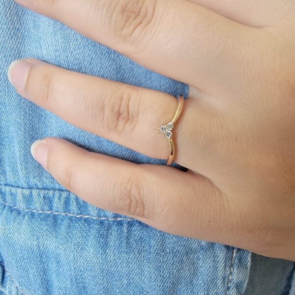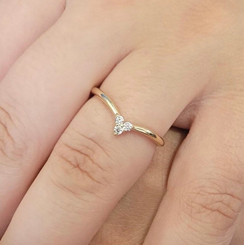 MULTI DIAMOND V SHAPE PROMISE RING, SOLID 14K GOLD STACKABLE CHEVRON BAND, ENHANCER GUARD ENGAGEMENT JEWELRY, ROUND CUT MATCHING BAND GIFT