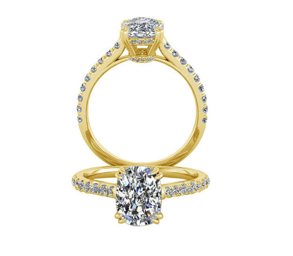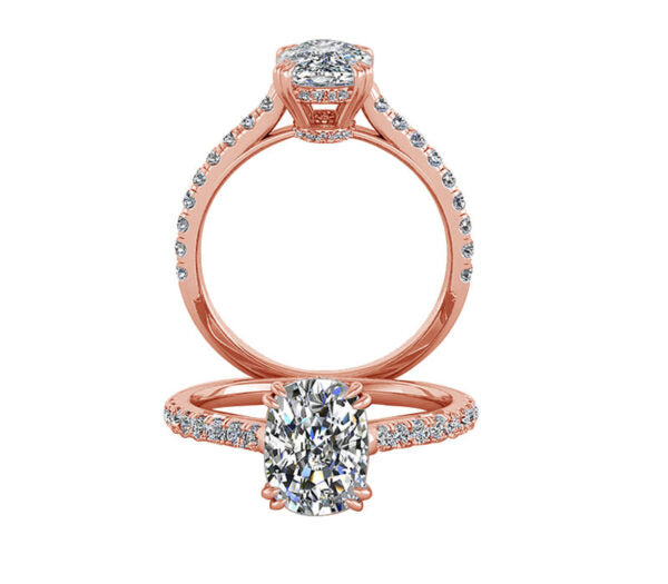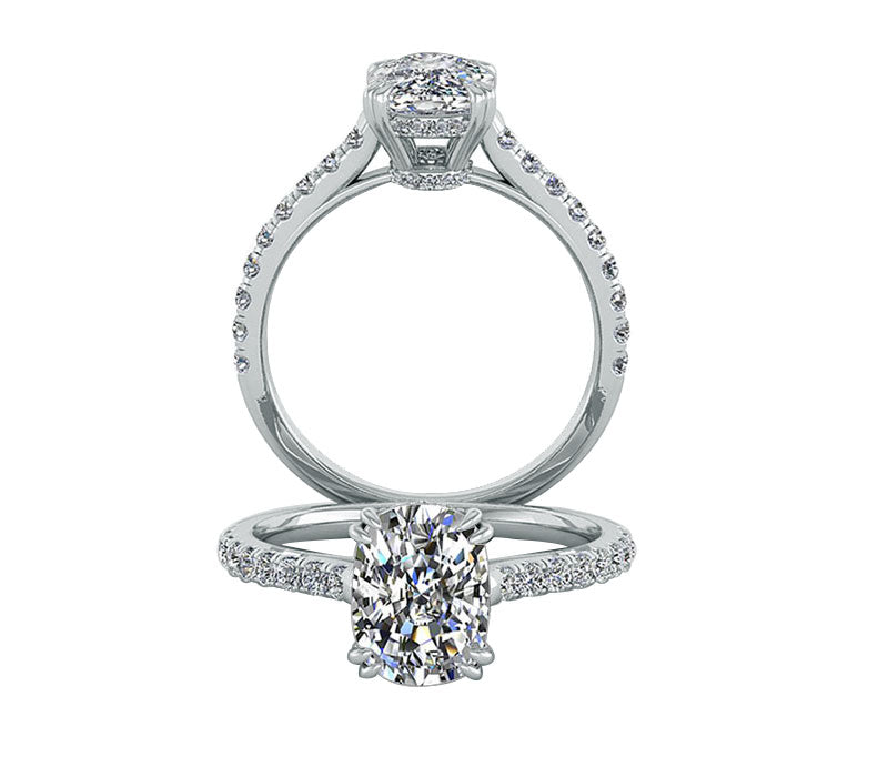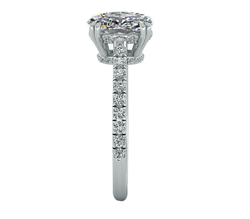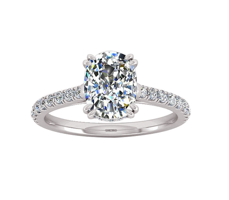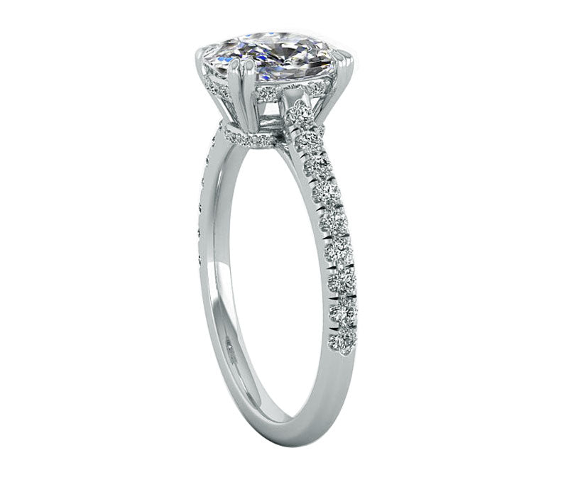 This diamond engagement ring is a modern sparkle style , features brilliant micropavé-set diamonds, with double prongs to showcase your center diamond. Can be made with different Diamond Shape .