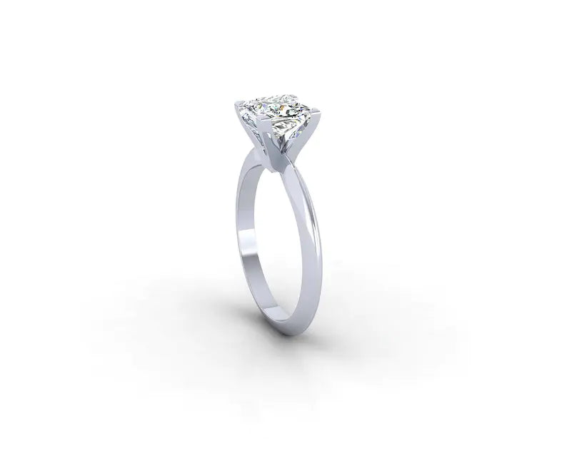 Stunningly simple, this moissanite solitaire engagement ring is designed with a modern knife-style edge to bring focus to your Princess Cut Moissanite. Can be made with Any Moissanite Shape. Center Moissanite Included !!