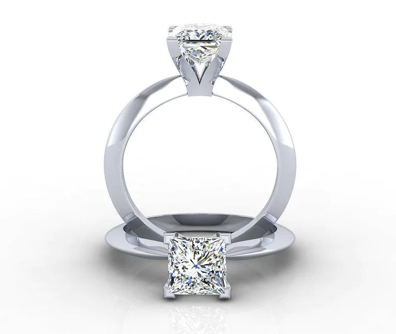 PRINCESS CUT SOLITAIRE RING, 14K SOLID GOLD MOISSANITE ENGAGEMENT BAND, 18K KNIFE EDGE STYLE BRIDAL SET, PLATINUM SQUARE SHAPED PROMISE RING