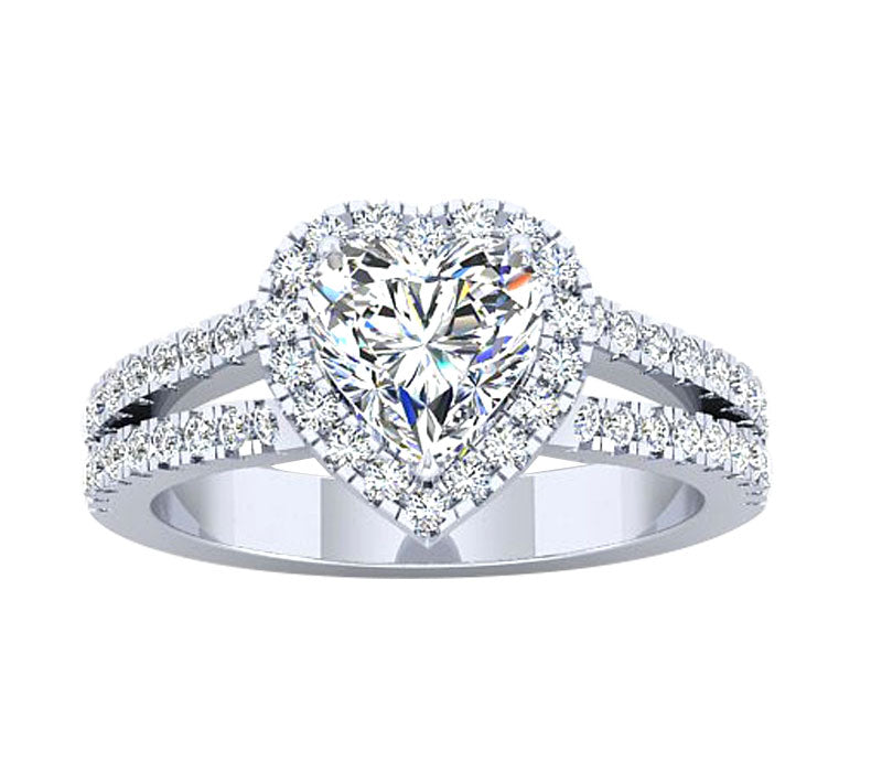 ROMANTIC SPLIT-SHANK HEART SHAPED HALO DIAMOND ENGAGEMENT RING