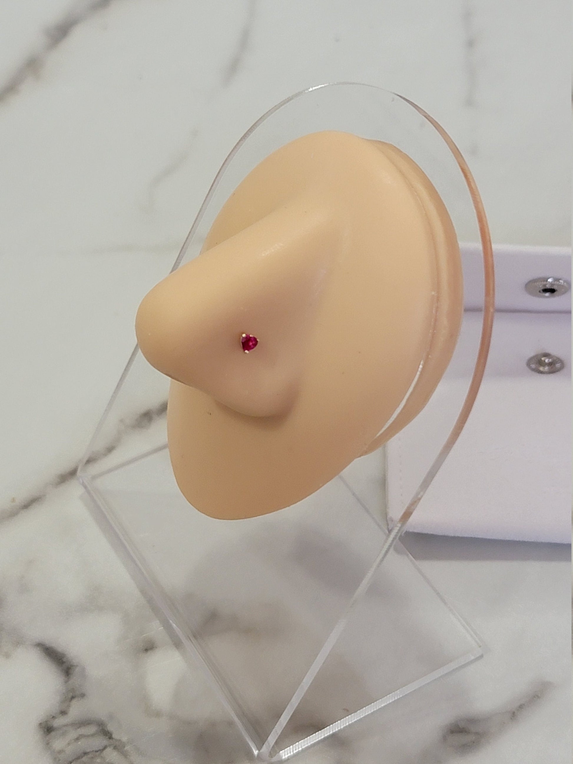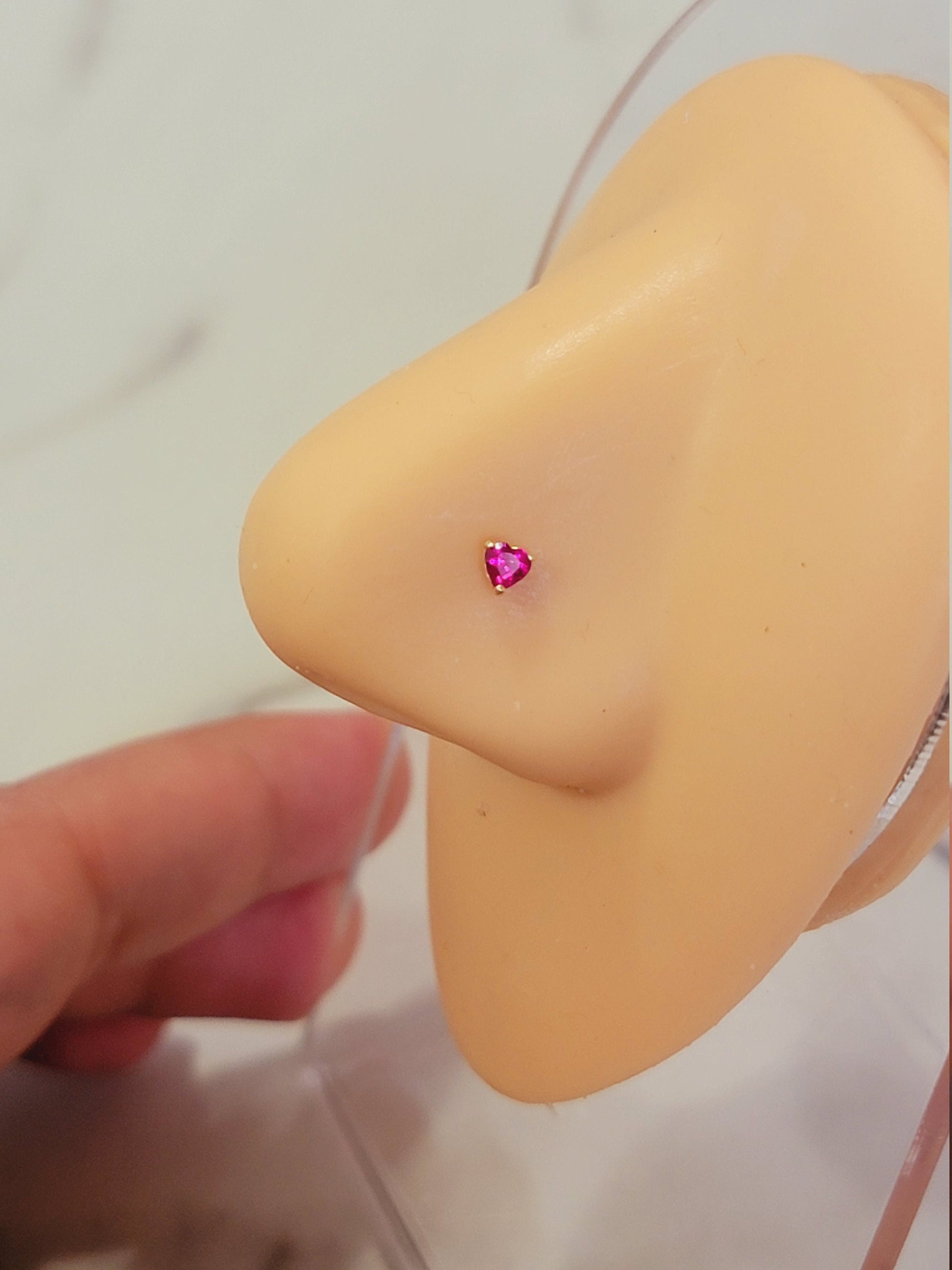 Ruby Nose Stud, 14k Solid Gold Nose Stud, Ruby Nose Pin,14k Gold, Nose Stud, Tiny Nose Ring, Heart Nose Studs, Nose jewelry
