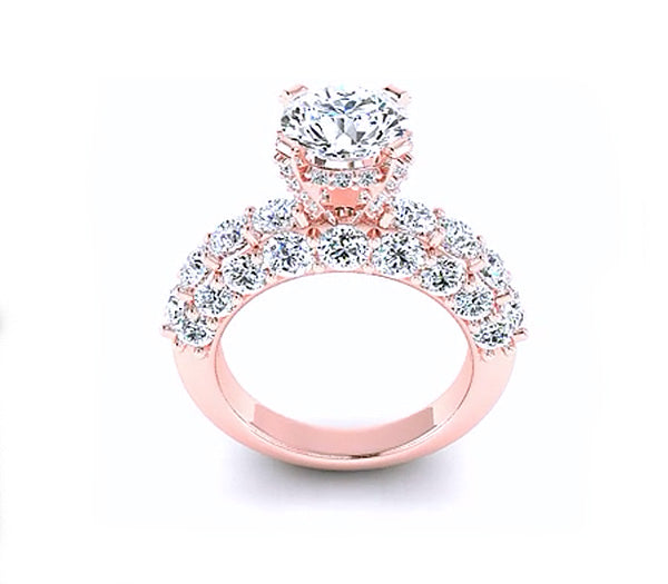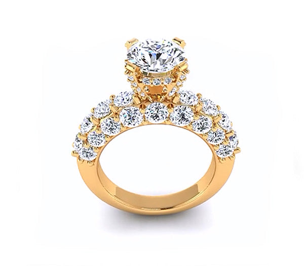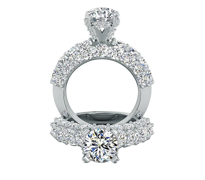 Stunning and timeless, this 14k white gold engagement ring , showcases three shank sides of prongs setting diamonds that sparkle at every angle. Can be made with Any Diamond Shape .