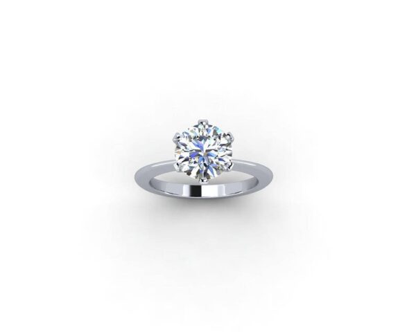 SOLITAIRE ROUND CUT MOISSANITE ENGAGEMENT RING, KNIFE STYLE PRONG BAND, 18K CLASSIC SINGLE GEM JEWELRY, HIGH QUALITY PLATINUM BRIDAL SET