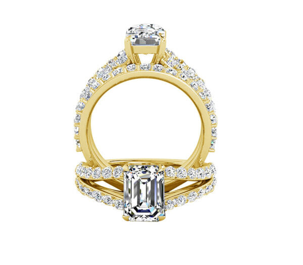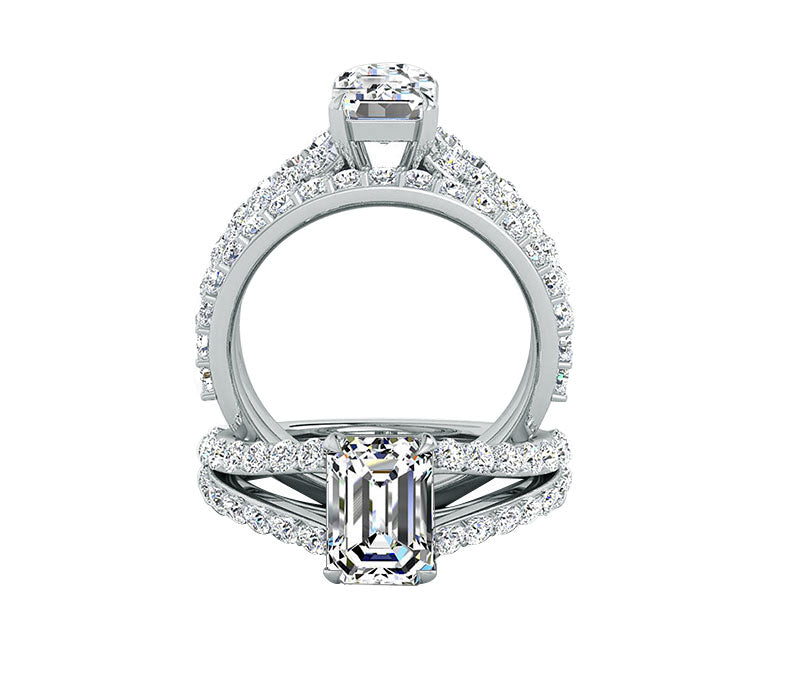 SPLIT SHANK EMERALD CUT ENGAGEMENT RING