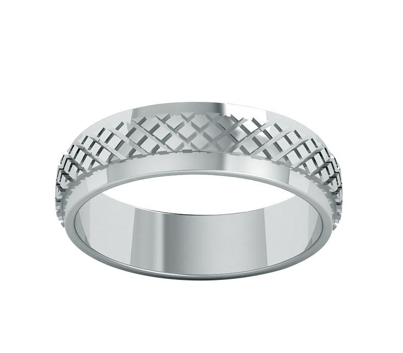 This elegant 3D style men’s wedding band is crafted from 14k white gold can be made in different gold colors . Each ring can be hand-crafted in your choice of white gold, yellow gold 14K, & 18K) and platinum . Engrave the inside for free with a name or special date to make it truly.