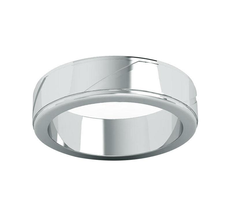 Timeless classic with a unique simply design, this comfort fit men’s wedding band made in 14k White Gold . The band is 7 mm wide and is rounded from the inside for a comfortable wear. Each ring can be hand-crafted in your choice of white gold, yellow gold 14K, & 18K) and platinum . Engrave the inside for free with a name or special date to make it truly.