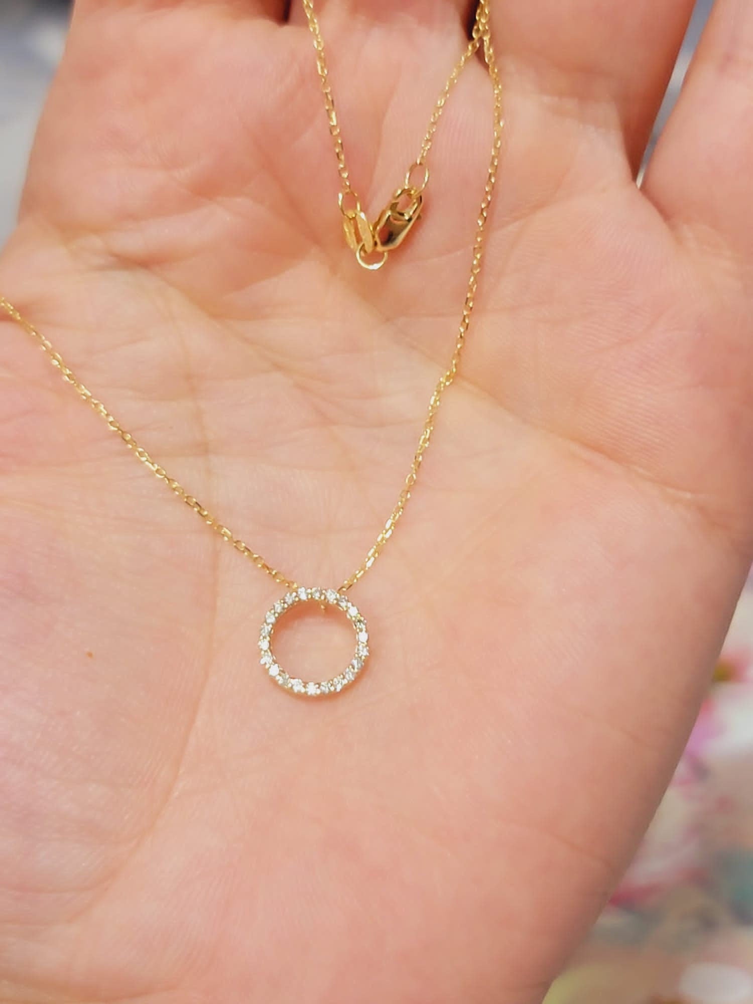 14K Gold Diamond Necklace, Diamond Circle Of life necklace in 14k Solid Gold, Cluster Diamond Pendant, Open Circle Diamond Pendant