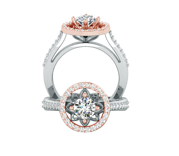 TWO-TONE FLORAL HALO DIAMOND ENGAGEMENT RING